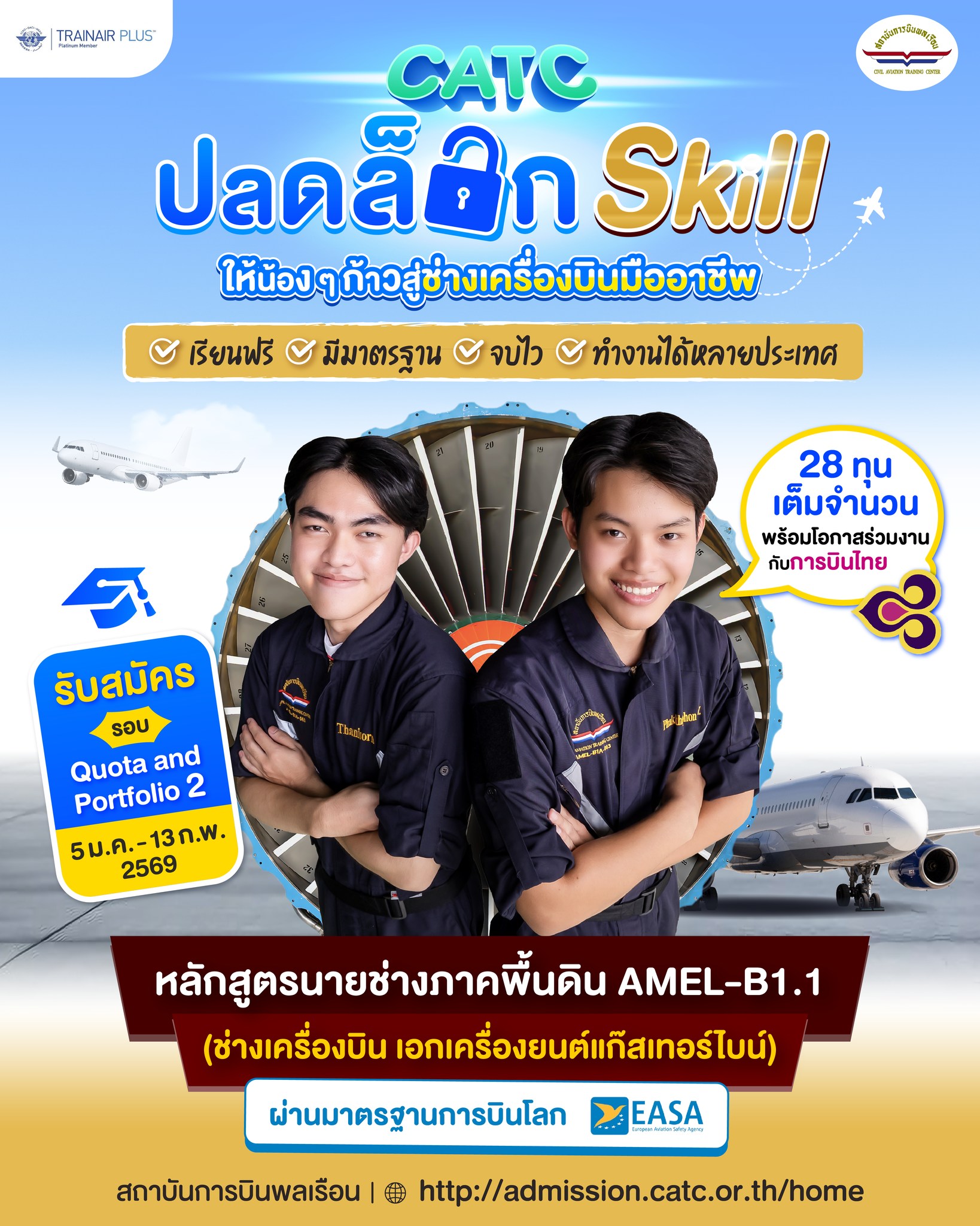 ก้าวสู่การเป็นนายช่างเครื่องบินมืออาชีพ เทียบเท่ามาตรฐานสากล เพราะ หลักสูตรผ่านการรับรองจาก CAAT และผ่านมาตรฐานการบินของสำนักงานความปลอดภัยการบินแห่งสหภาพยุโรป EASA (Foreign EASA Part-147 Maintenance Training Organization)