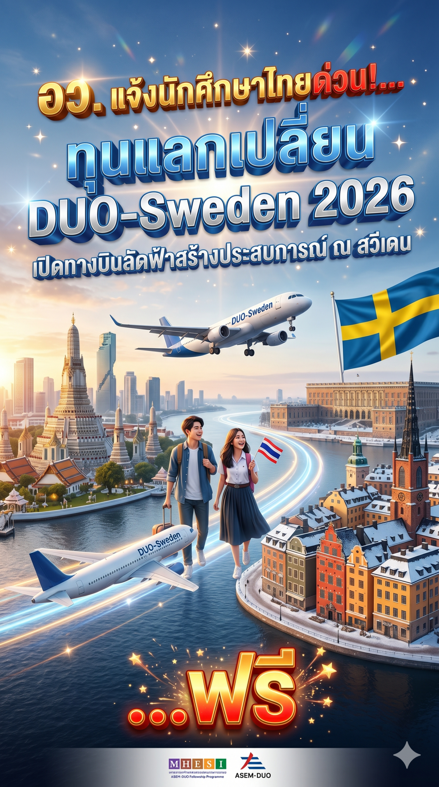 #ทุนการศึกษา #ASEMDUO #DUOSweden2026 #แลกเปลี่ยนนักศึกษา #เรียนต่อสวีเดน #กระทรวงอว #ทุนเรียนต่างประเทศ #ThaiEducationNews