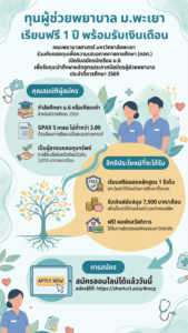 📰 มหาวิทยาลัยพะเยา เปิดรับสมัคร “ทุนผู้ช่วยพยาบาล” ปีการศึกษา 2569 เรียนฟรี 1 ปีเต็ม พร้อมเงินสนับสนุนรายเดือน