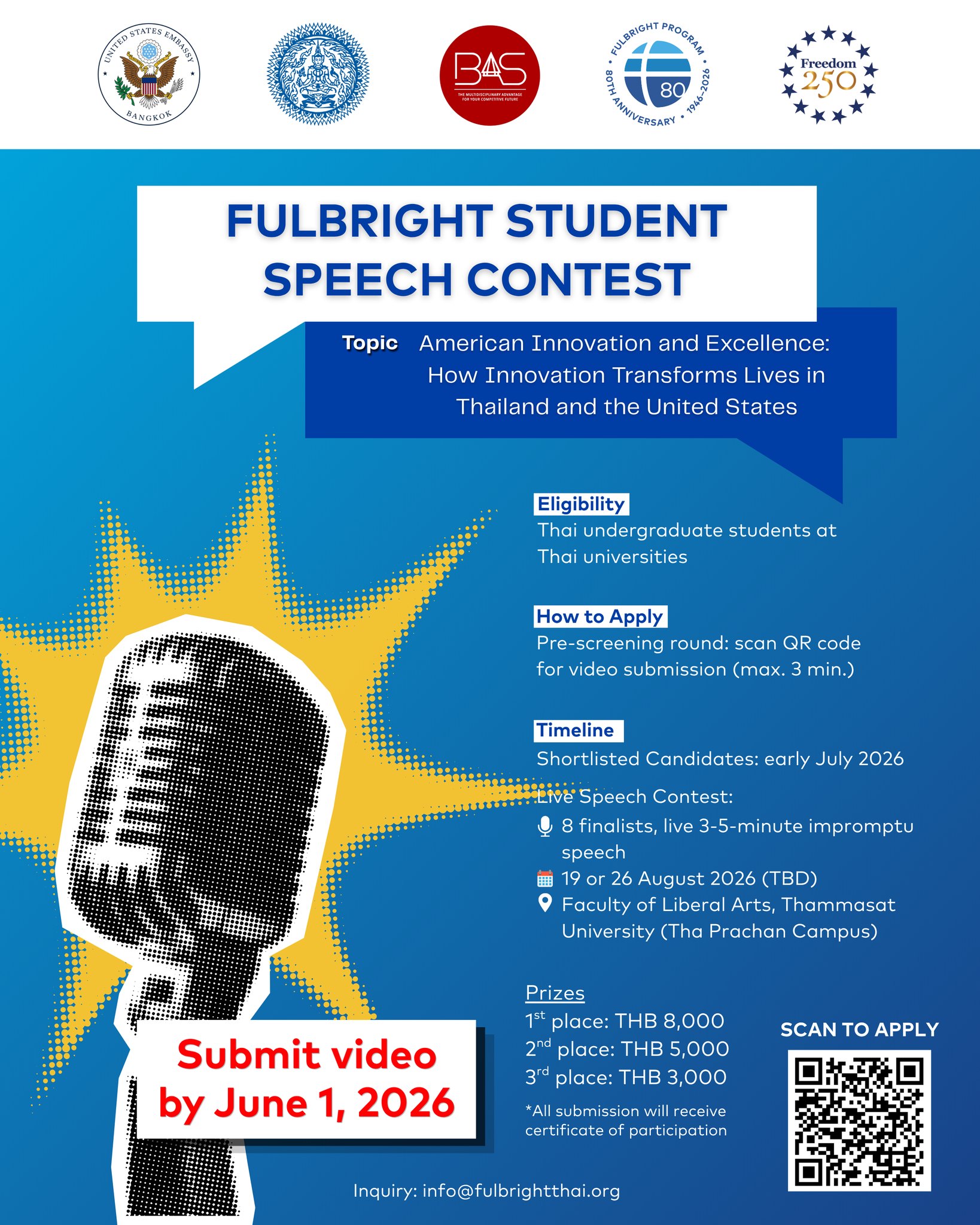 #FulbrightThailand #Fulbright80 #Freedom250 #SpeechContest #AmericanInnovation