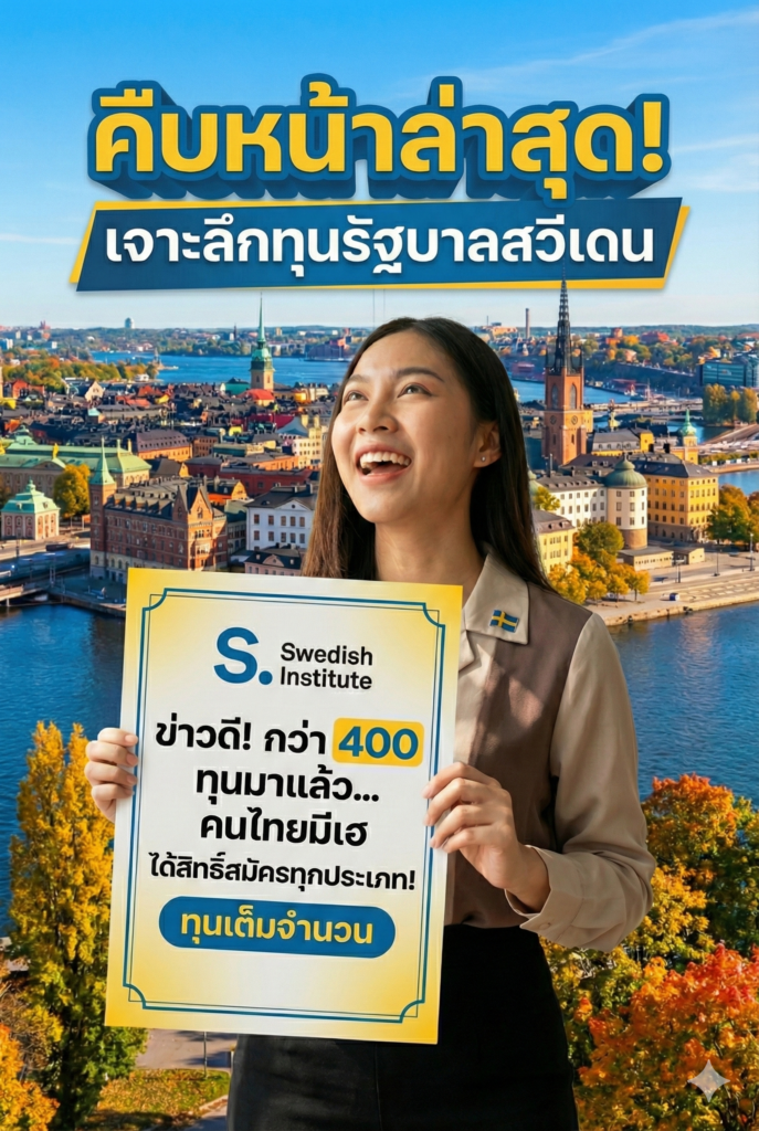 สำหรับปีการศึกษา 2026/2027 Swedish Institute ได้เปิดรับสมัครทุน SI Scholarships for Global Professionals อย่างเป็นทางการ โดยทุนนี้เปิดให้คนไทยสามารถสมัครได้โดยตรงผ่านระบบออนไลน์ของสวีเดน โดยไม่ต้องผ่านเอเจนซี่ ทุนครอบคลุมค่าเล่าเรียนเต็มจำนวน เบี้ยเลี้ยงรายเดือน ทุนเดินทาง และโอกาสเข้าร่วมเครือข่ายวิชาชพระดับโลก ได้แก่ SI Network for Global Professionals และ Sweden Alumni Network หลังสำเร็จการศึกษา