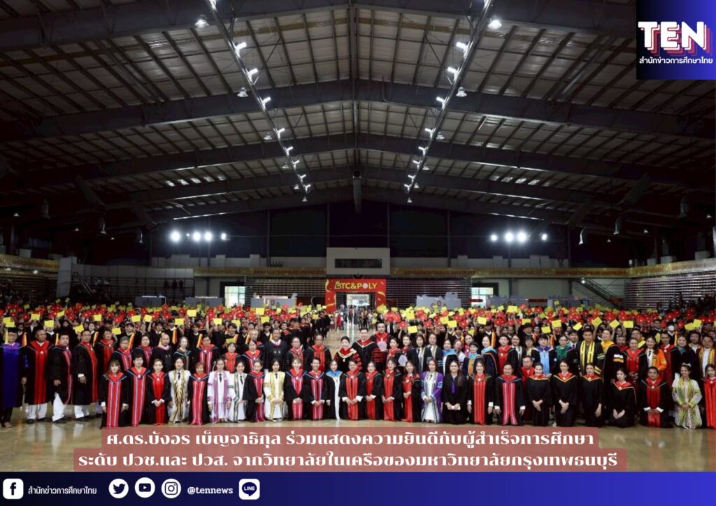 วันที่ 20 เมษายน 2568 วิทยาลัยอาชีวศึกษากรุงเทพธนบุรี และวิทยาลัยเทคโนโลยีโพลีกรุงเทพ จัดพิธีรับประกาศนียบัตรประจำปีการศึกษา 2567 วันแห่งความทรงจำของเหล่านักศึกษา ณ อาคาร BANGKOK THONBURI HALL มหาวิทยาลัยกรุงเทพธนบุรี โดยศาสตราจารย์ ดร.บังอร เบ็ญจาธิกุล อธิการบดีมหาวิทยาลัยกรุงเทพธนบุรี เป็นประธานในพิธีมอบประกาศนียบัตรให้กับผู้สำเร็จการศึกษาระดับประกาศนียบัตรวิชาชีพ (ปวช.) ประกาศนียบัตรวิชาชีพชั้นสูง (ปวส.) จากวิทยาลัยอาชีวศึกษากรุงเทพธุรกิจ และวิทยาลัยเทคโนโลยีโพลีกรุงเทพ ประจำปีการศึกษา 2567 พร้อมกล่าวให้โอวาทและแสดงความยินดีกับผู้เข้าร่วมงานดังกล่าว และได้เน้นย้ำถึงความสามารถ ความรู้ และทักษะที่ได้รับจากสถาบันไปใช้งานและดำเนินชีวิต ในการนี้ รศ.ดร. ดวงฤทธิ์ เบ็ญจาธิกุล ชัยรุ่งเรือง สมาชิกสภาผู้แทนราษฎรพร้อมด้วยคณะผู้บริหาร คณาจารย์ และผู้ปกครองได้ร่วมแสดงความยินดีกับผู้สำเร็จการศึกษาจากวิทยาลัยในเครือของ มกธ. ทั้ง 2 แห่งดังกล่าวด้วย รวมถึงได้รับเกียรติจาก พันตำรวจโท สืบศักดิ์ ผันสืบ (รองผู้กำกับโจ้) อดีตนักกีฬาตะกร้อทีมชาติไทย ปัจจุบันดำรงตำแหน่ง รอง ผกก.จร.สน.วังทองหลาง และกรรมการสมาคมกีฬาตะกร้อแห่งประเทศไทย ขึ้นรับโล่ศิษย์เก่าดีเด่นที่ประสบความสำเร็จในการเรียนดีเด่น […]
