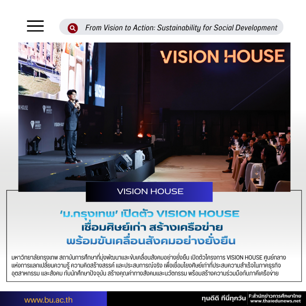 ม.กรุงเทพ เปิดตัว VISION HOUSE เชื่อมศิษย์เก่า สร้างเครือข่าย พร้อมขับเคลื่อนสังคมอย่างยั่งยืน