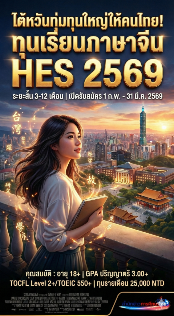 ทุนสนับสนุนเรียนต่อระดับปริญญา และทุนเรียนภาษาจีน จากกระทรวงศึกษาธิการไต้หวัน ที่มอบให้คนไทยในปี 2026 2026 MOE Taiwan Scholarship Directions for Thai Students ทุนสนับสนุนเรียนต่อระดับปริญญา จากกระทรวงศึกษาธิการไต้หวัน เปิดรับสมัคร: 1 กุมภาพันธ์ – 31 มีนาคม พ.ศ. 2569 จำนวนทุน: 24 ทุน ค่าเล่าเรียน: เทอมละ 40,000 NTD *** หมายเหตุ หากสมัครเรียนนอกเหนือจากรายชื่อมหาวิทยาลัยที่ประกาศไว้ ผู้ได้รับทุนต้องออกค่าใช้จ่ายส่วนต่างของค่าเล่าเรียนเอง เงินสนับสนุนรายเดือน: – ปริญญาตรี เดือนละ 15,000 NTD – ปริญญาโทหรือปริญญาเอก เดือนละ 20,000 NTD ระยะเวลาทุน – ปริญญาตรี: สูงสุด 4 ปี – ปริญญาโท: สูงสุด 2 […]